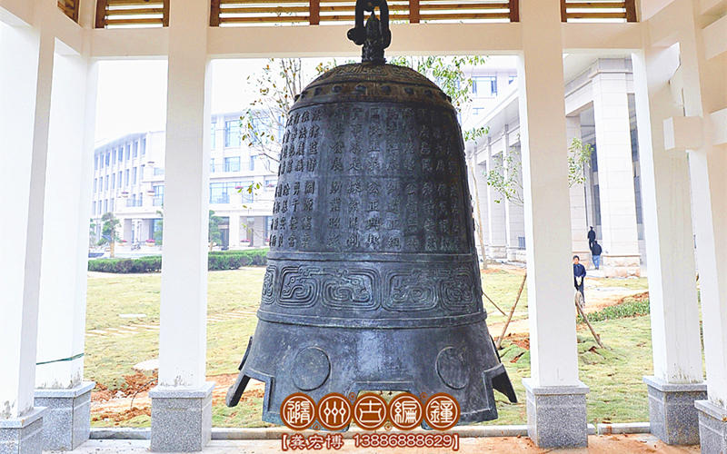 警示鐘,通高2米,下部口徑1.4米,上部鈕高0.3米,總重約1600公斤。襄陽市檢察院定制,警世鐘是本次青銅器訂單當中,規(guī)格最大,文字最多,要求最高,用銅最重的器物,他的制作工藝如果運用我們的失蠟精密鑄造法,反而達不到精良效果,因而我們聘請了多位專家指導,運用最先進復合型精密鑄造工藝,其中使用陶瓷型技術制作鐘外模,運用樹脂砂工藝做鐘內心,因而得到了完好鐘體外形,保證了發(fā)音的渾然一體,精細的紋飾反映了獨特的地域歷史文化。