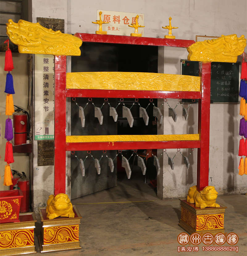 材質(zhì):編磬:靈璧響石;磬架“木結(jié)構(gòu)”
