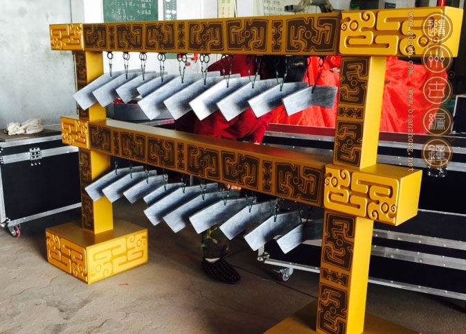 13件漢式編鐘是根據(jù)漢代風(fēng)格及參考?xì)v史文化設(shè)計(jì)制作的。它長(zhǎng)2米,高1.5米,寬0.4米,可選底座帶輪,方便移動(dòng),定調(diào)樂(lè)器,可選C調(diào)、F調(diào)、G調(diào)、A調(diào)等單獨(dú)調(diào)式。同類型配套編磬為20件漢式編磬。(尺寸規(guī)格及編鐘編磬件數(shù)可根據(jù)客戶需要調(diào)整)