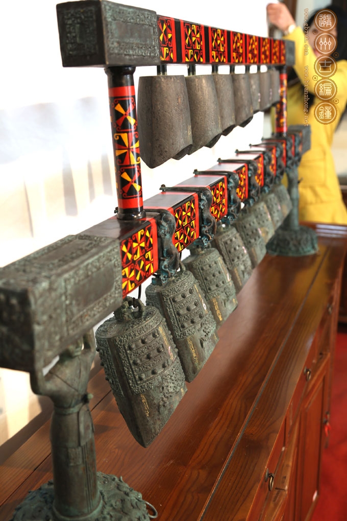 材質(zhì):編鐘及配件:錫青銅 鐘架:實木彩繪