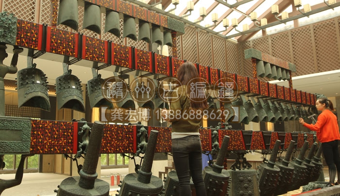 陳列在漢樂府酒店大堂中心的古代編鐘